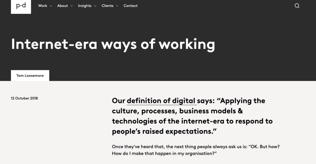 “Our definition of digital says: “Applying the culture, processes, business models & technologies of the internet-era to respond to people’s raised expectations.”