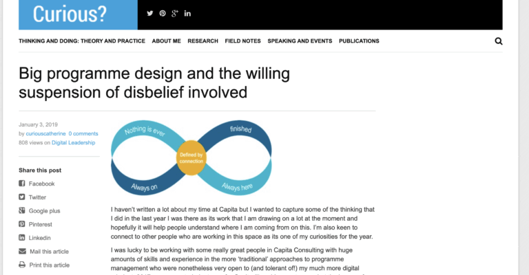 “Whenever I have been involved either as part of the delivery or an observer of Big Programmes – usually in local government – I have been struck by the willing suspension of disbelief that participants have to sign up for.…