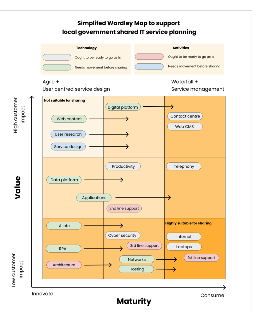 So the darker orange box in the bottom right is where sharing of digital capabilities ought to start on day one. These are utility-like components that have little impact on the end user and where real economies of scale can be achieved by organisations joining together.